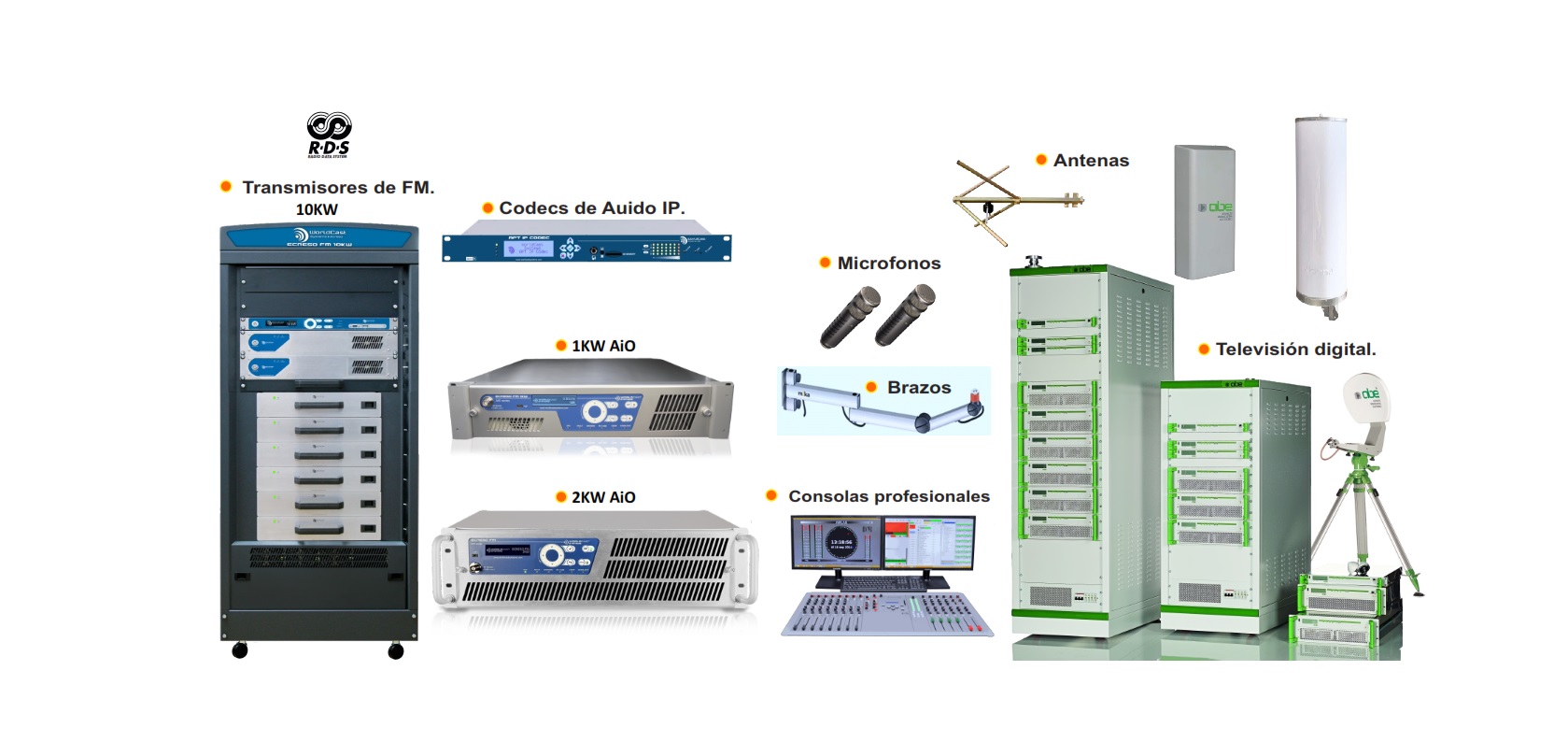 Soluciones broadcast completas: transmisores, antenas, codificadores y procesadores de audio con soporte técnico especializado.